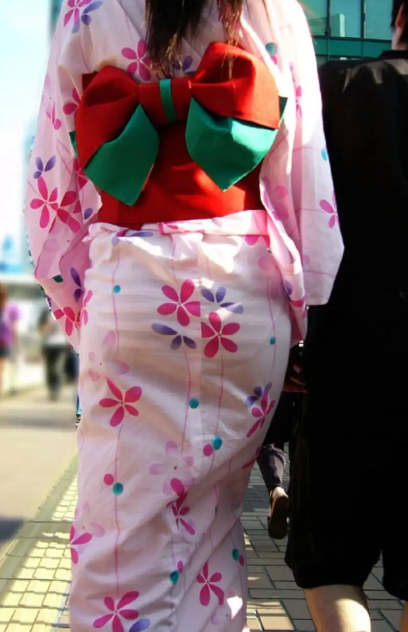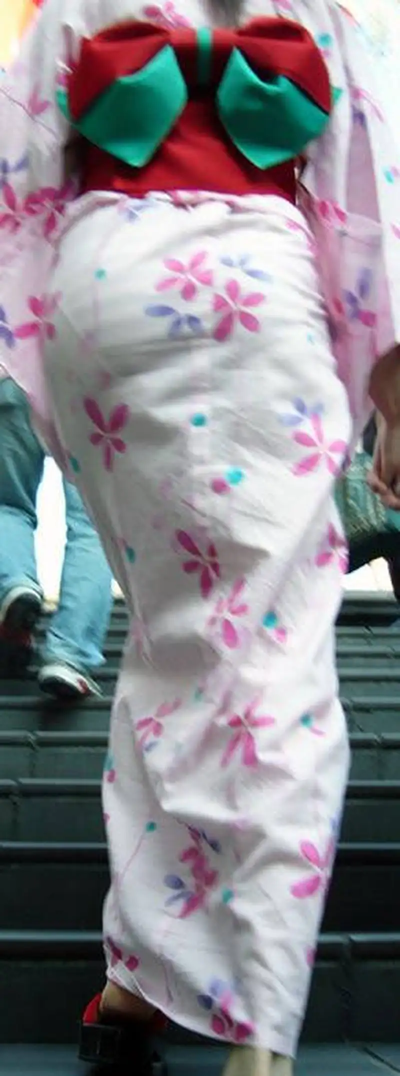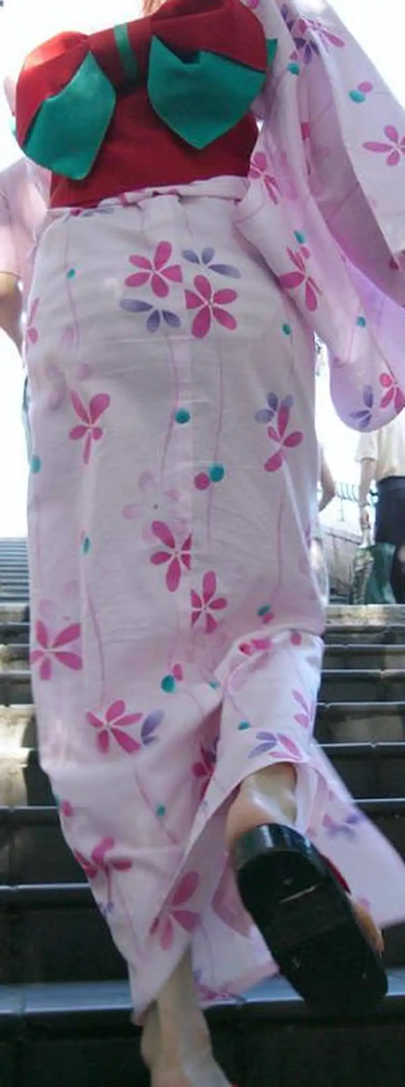 着物はスカート裾が長いので、中々パンチラ逆さ撮り盗撮は難しいですが、パンティーラインが見える透けパンは中々良い感じで拝見出来ます