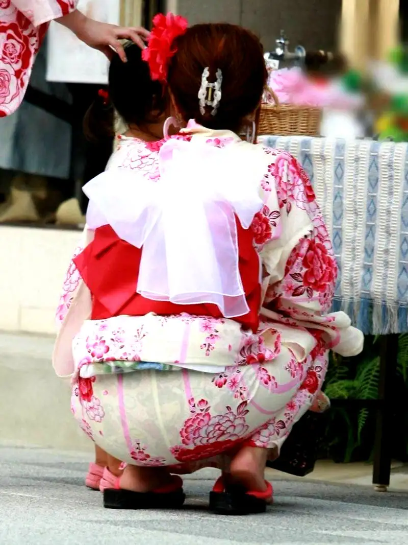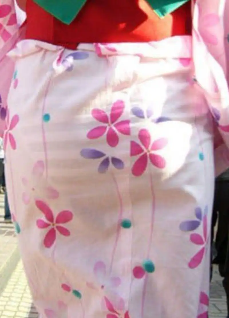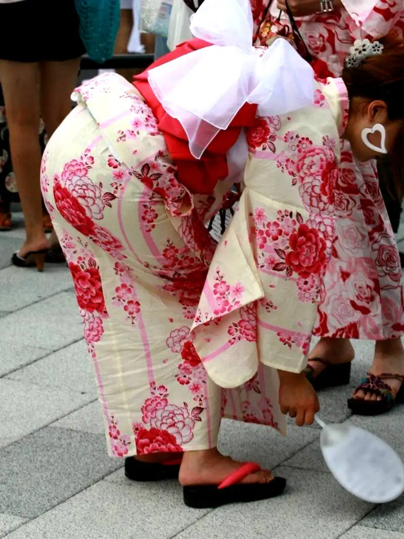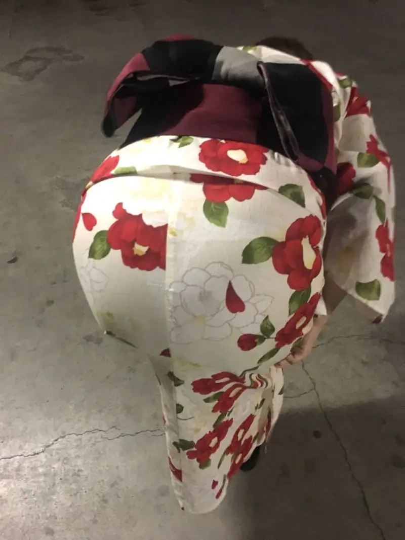 着物はスカート裾が長いので、中々パンチラ逆さ撮り盗撮は難しいですが、パンティーラインが見える透けパンは中々良い感じで拝見出来ます